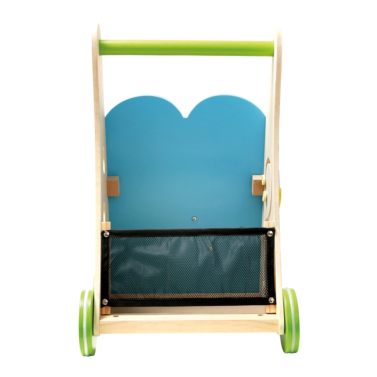 This multifunctional wooden walker helps children practice balance, coordination, and fine motor skills. The front panel is packed with activities: a musical xylophone with mallet, gear trains, a bead maze, and a shape sorter that support focus and logical thinking.