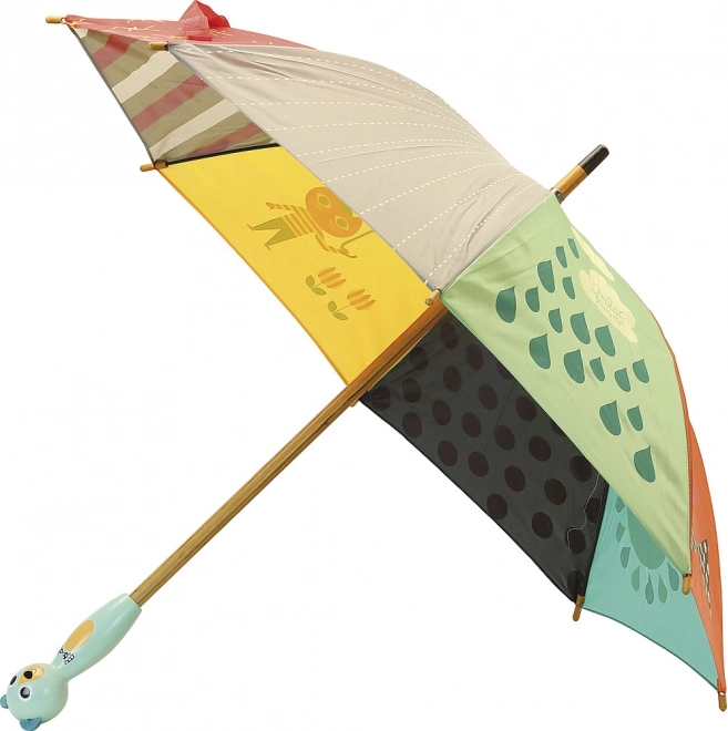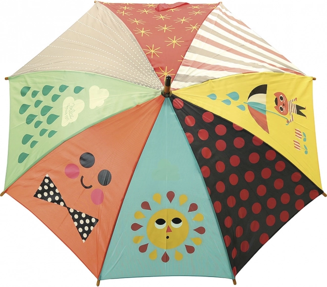 The umbrella is made in France from quality materials with an emphasis on safety and comfort for little users. The ergonomic wooden handle fits small hands well, and the smooth opening makes independent use easy.