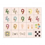 Turn first encounters with numbers into fun. Dino wooden blocks teach children to recognize numerals, build simple equations, and perceive quantities in different ways — using dots and pictures of fingers. Thanks to the clear printing and pleasant natural material, even the smallest hands can handle them with ease.