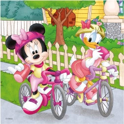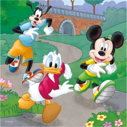 Discover the magic of puzzling with beloved DISNEY characters. This set of three 55-piece puzzles brings the sports adventures of MICKEY, MINNIE, and their friends — running, basketball, and cycling. While assembling, kids practice patience, logical thinking, and hand–eye coordination.