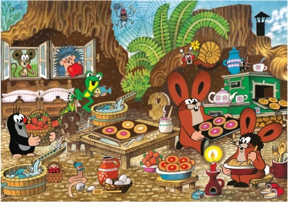 A cheerful illustration with the Little Mole and friends in the kitchen, full of details that entertain children and spark their imagination.