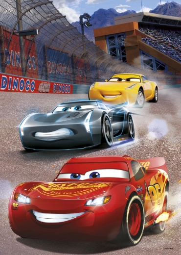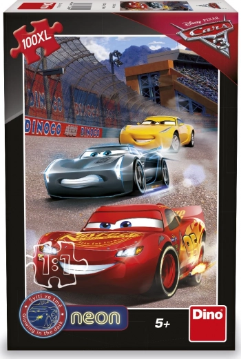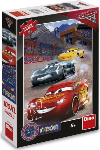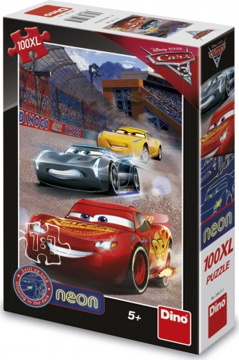 Fun puzzle with a motif from the movie CARS 3 will delight every little fan of Lightning McQueen. Thanks to the neon elements, the image glows partially in the dark and highlights the outlines of the three racers – Lightning, Jackson Storm, and Cruz Ramirez. Large XL pieces made of durable cardboard are easy to assemble and ideal for children aged 5+.