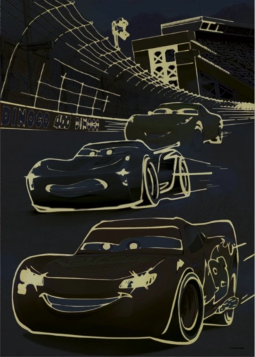 - Neon effect in the dark – highlights the outlines of Lightning McQueen, Jackson Storm, and Cruz Ramirez