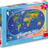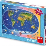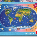 This world map jigsaw with illustrations is ideal for all little travelers. Show kids the means of transport and animal inhabitants of all continents. Assembling the 300 XL pieces is not only fun but also educational.