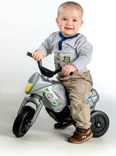 The lightweight plastic Enduro Yupee balance bike brings plenty of fun and support for little ones from 12 months. Thanks to the low saddle and stable construction, it develops balance, motor skills, and self-confidence, making your walks longer and more enjoyable.