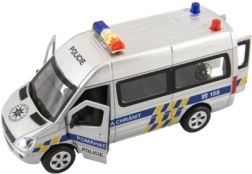 The 15 cm metal police car is great for action-packed play at home and on the go. Thanks to its sturdy metal build with plastic details, it withstands intensive play, while the flashing lights and engine and siren sounds add a realistic touch to every chase.