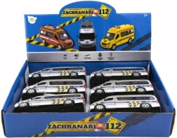 Police car with lights and sound, 15 cm, metal/plastic, pull-back