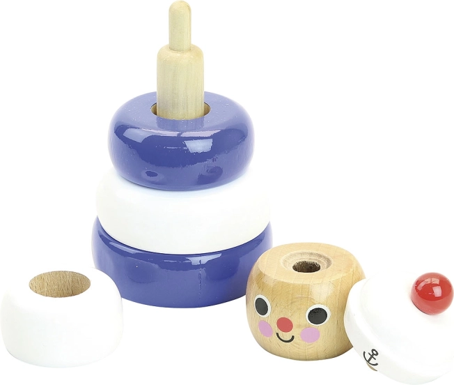Thanks to the simple stacking of variously colored pieces, the toy promotes the development of children's fine motor skills and their ability to recognize shapes and colors.