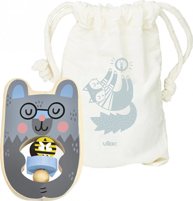 A cute wooden bear rattle by illustrator Michelle Carlslund