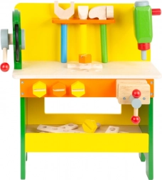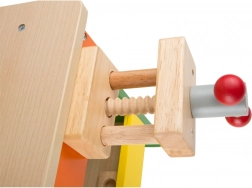 The solid construction made of quality wood with colorful lacquer guarantees stability and long service life. The workbench is designed with safety and playful learning in mind—an ideal toy for role play, developing technical thinking, and imagination.