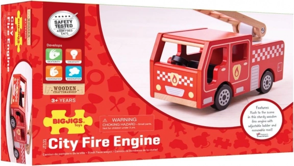 The wooden construction made from high-quality, responsibly sourced materials ensures durability and safety, meeting current European safety standards. The attention to detail and quality make this toy the perfect gift for any young firefighter.