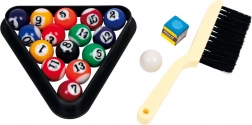 Everything you need is included: two cues, balls, a triangle rack, and chalk.