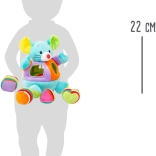 This colorful motor skills toy for little ones combines soft plush with smart activities. Children insert the soft shapes into the matching openings, discover squeaking, rattling, and crinkling sounds, and take a look in the safe mirror. The mouse is ideal for first explorations of shapes, colors, and cause-and-effect through engaging sounds.