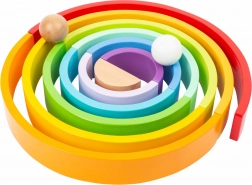 This large wooden rainbow offers dozens of ways to play: from building towers and bridges to creating marble runs and balance challenges. Children naturally learn colors, sizes, and sorting, practice hand–eye coordination, and develop logical thinking.