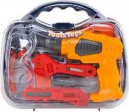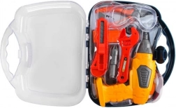 In the set you'll find essential tools such as a cordless drill, knife, safety goggles, handsaw, screws, pliers, and more, neatly packed in a portable case.