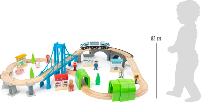 We present to you an amazing wooden train set with bridges by Small Foot, offering 60 pieces for unlimited fun! This train set allows children to create various train routes with bridges, tunnels, and many other exciting features.