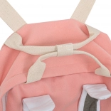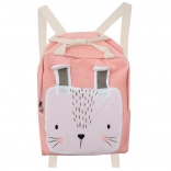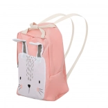A cute children's backpack with a bunny motif in pink, ideal for preschoolers. It offers a spacious main zip compartment, adjustable shoulder straps, and soft cotton material for maximum comfort while wearing.