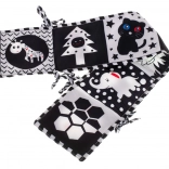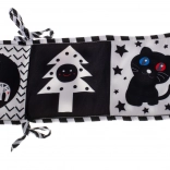 The contrast sensory-motor book, designed as a crib protector, is the perfect choice for children who are beginning to explore the world. The accordion-shaped book can be easily attached to the crib with ties, providing not only fun but also safety.