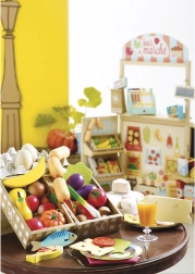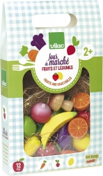 This quality set from VILAC offers children a colorful selection of popular fruits and vegetables. The wooden design with felt accents is durable, safe, and pleasant to the touch. Perfect for play in a kids’ kitchen or market stall, it encourages communication, creativity, and learning about healthy eating.