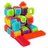 The blocks are made of high-quality plastic, they are very light, flexible, and at the same time super durable. They help with learning new shapes and colors and develop fine motor skills. The blocks are designed to stimulate a child’s developing senses: sight through vivid colors and touch through the unique shape and connection method. Blocks that give you amazing opportunities for creative play! In addition to the traditional ways of combining like regular blocks, these blocks can also be connected across the entire flat side, giving you another way to build. They can be used to construct buildings, robots, and other creations!