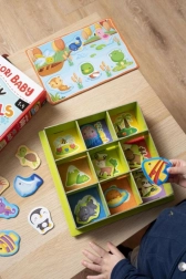 The Montessori Animal Box brings children the colorful world of nature through simple sorting and matching. Kids learn to distinguish animals and their natural environments, developing logical thinking and hand–eye coordination. Thanks to its colorful and intuitive design, even the youngest children quickly get the hang of the game.