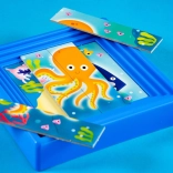 Discover a fun set for the little ones: CAROTINA Baby progressive children's puzzles with 8 puzzle sets of increasing difficulty. Thanks to the special base, both assembling and storing pieces is easy, and the large, durable cardboard pieces are safe for children from 1 year. The underwater world theme develops fine motor skills, logical thinking, and visual perception.