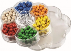Discover playful creativity with DETOA wooden beads in a practical flower-shaped box. The set includes various sizes and colors of beads and elastic threading cords, making beading easy and fun. It supports fine motor skills, creativity, and children's concentration. Suitable from 3 years and meets EU safety standards.