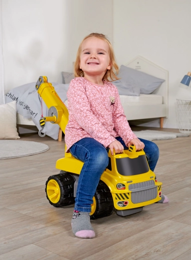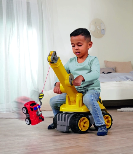 The BIG Power Worker maxi crane is a stable ride-on made of high-quality, robust plastic, designed for long service life and safe fun. The crane tower rotates 360° and the movable boom is easy to operate, so kids can lift and move objects using the powerful cable winch with a pulling force of up to 450 g.
