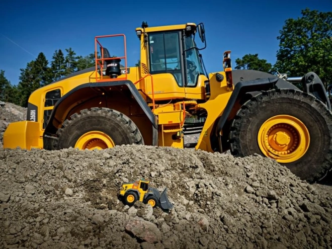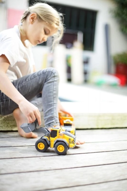 Volvo wheel loader 23 cm with lights, sounds, and a movable bucket. A realistic toy for sand and home play, great for developing imagination and motor skills.