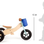 Stylish and safe wooden balance bike for kids, which grows with them. Offers the option to convert from a tricycle to a two-wheeled version, supporting the development of motor skills and coordination.