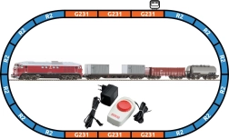 Complete model railway set for a quick start in H0 scale: CSD BR 130 “Ludmilla” diesel locomotive, three freight cars, and a track oval with roadbed and analog control. The ideal choice for entering the world of model railways with durable roadbed tracks, directional lighting, and the option to go digital via a PluX22 interface.