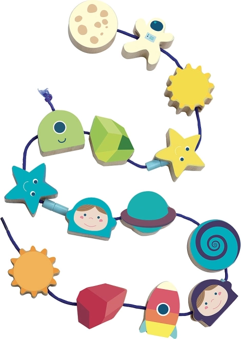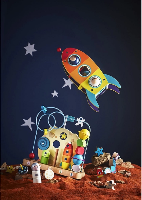 Discover the mysteries of space with this amazing wooden threading toy. Little hands will enjoy the adventure of stringing beads on a textile cord, which helps develop fine motor skills and hand-eye coordination.