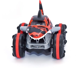 The car is equipped with a 2.4 GHz frequency, ensuring reliable control and operation. It can climb up to 45 degrees and offers exciting 360-degree rotations on the spot. The rear fin gracefully moves while driving in water, which enhances the illusion of a swimming shark.