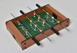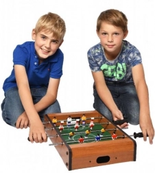 This smaller table football is an ideal choice for all football fans who want to have fun at home. It is built from colorful, lacquered wood, ensuring long-lasting durability. Each team has 6 footballers placed on two rods, allowing easy control and a simulation of a real football match.