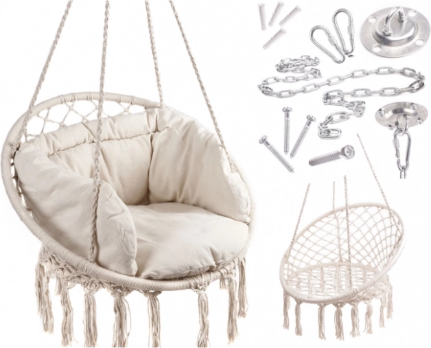 Enjoy gentle swinging and comfortable reading in a chair that combines a natural look with a strong structure. The neutral ecru color pairs beautifully with various interior styles, while the fringes add a boho touch that enlivens any space.