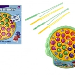 Box contents: 1 rotating board with fish, 4 fishing rods, and 21 fish. Colors may vary based on current stock availability.
