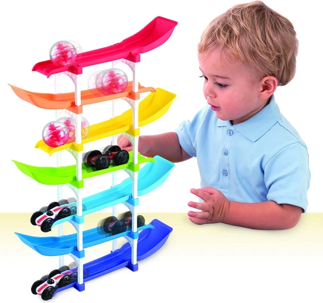 This children's track with a car offers a unique way to develop children's motor skills. With three colorful balls and fascinating tracking of their movement down the track, it provides entertainment while supporting creative learning.