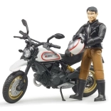 The Bruder BWORLD series delivers an authentic riding experience. The Scrambler DUCATI Cafe Racer motorcycle impresses with realistic details, from engine design to gold rims, and the rider with fully articulated joints enables dynamic poses and action scenes. The robust build ensures long service life and safe fun.