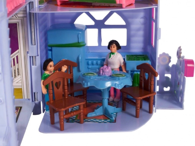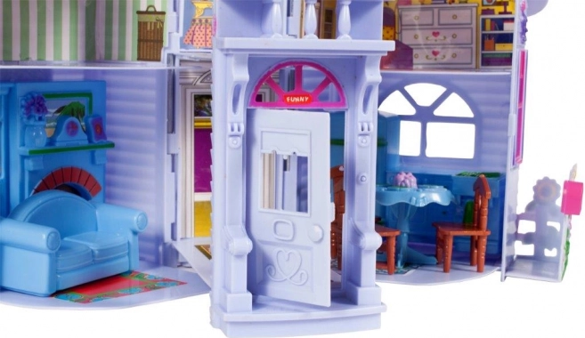 The dollhouse is equipped with a handle for easy carrying, which is ideal for play on the go.