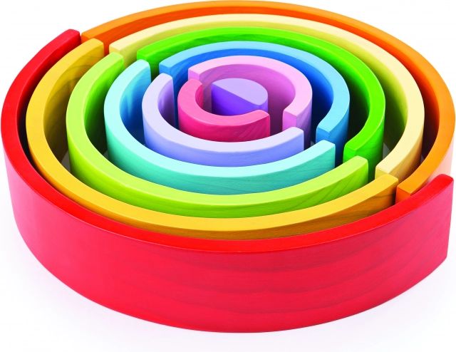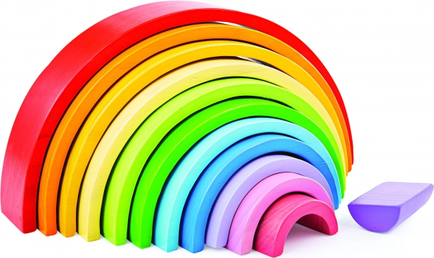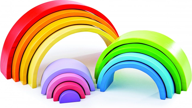 The rainbow is made from quality, responsibly sourced wood and colored with safe, non-toxic paints. It meets current European safety standards, so you can rely on safe, long-term use. After play, the vibrant array of arches creates a beautiful design element in a child’s room or preschool.