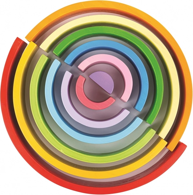 The large wooden rainbow is a timeless educational toy that supports open-ended, rule-free play. Kids can stack, layer, connect the arches, and combine them with other building sets — the possibilities are practically endless. Thanks to its robust design and smooth surface, the rainbow is pleasant to handle and stands up to everyday play.
