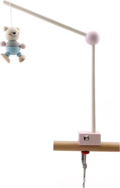 A stylish and functional holder for a mobile above the crib that you can easily attach with a robust metal clamp. Thanks to the universal clamping range, it is compatible with most baby cribs and furniture. Natural wood combined with a pink accent suits both modern and classic nurseries.