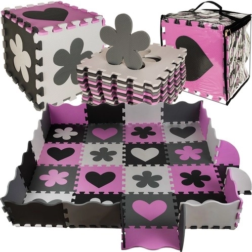 Create a soft and safe play area for kids with an EVA foam mat. The set of 16 tiles with removable shapes offers learning through play, fall protection, and easy maintenance. The material is water-resistant, non-slip, and the mat can be assembled into a 3D playpen with raised edges. Ideal for developing motor skills, logic, and shape and color recognition.