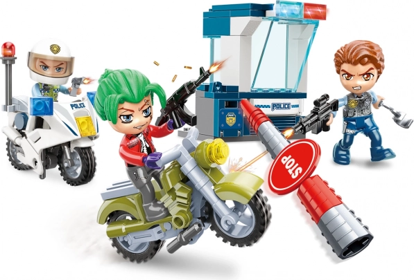 The set includes an action scene with a police motorcycle in pursuit of a criminal on a motorcycle.