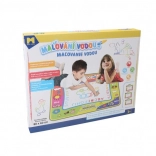 This cheerful mat for watercolor painting is a great tool for children who love to create. It supports their creativity, color recognition, and coordination. Usage is very simple: fill the magic pen with water and start painting. After five minutes, the picture dries and children can start again. The package includes: a mat measuring 80 x 60 cm and two magic pens. An ideal gift for little artists!