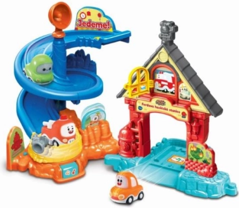 Interactive Ferda’s Fire Station from the Tut Tut Car Oto series with lights, music, and a slide. Includes mini figures of Ferda and Kristýnka.