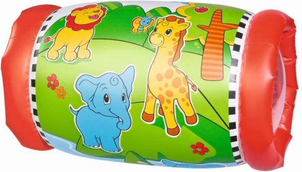 The inflatable crawling support roller is an ideal aid for babies and toddlers who are beginning to explore the world through movement. Transparent side panels allow children to watch the two rattling balls inside, which make sounds as the roller moves and encourage further exploration. The cheerful animal print increases appeal and supports visual perception.
