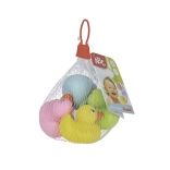 This duckling set turns every bath into playtime. Bright colors attract attention, the ducklings float on the surface, and they support children’s imagination and fine motor skills. The practical net allows easy drying and storage after bathing.