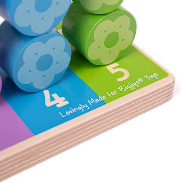 Each peg has its own number and color, so children easily understand the principle of matching and quantity. The flower pieces are easy for little hands to hold and encourage both independent play and shared discovery with parents.