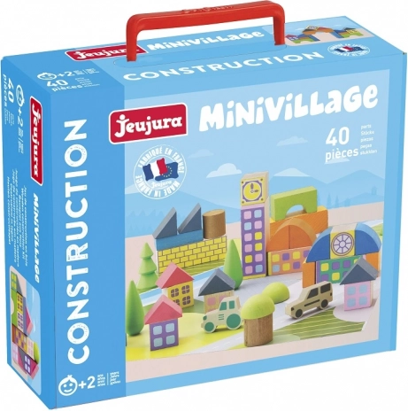 Discover the charm of the classic JEUJURA wooden building set that develops children’s imagination and fine motor skills. The set includes 40 carefully crafted pieces and a play mat, allowing kids to easily build a picturesque village. Made in France from solid beech and pine wood, finished with safe water-based paints. The practical packaging in a cardboard suitcase printed with plant-based inks makes this set a great gift. Safe materials, high-quality workmanship, and creative play for children from 2 years.